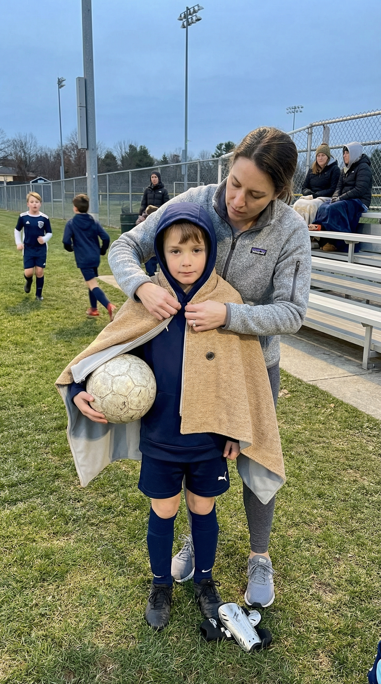 "Warm for hours on metal bleachers—hands-free drape, machine washable."
